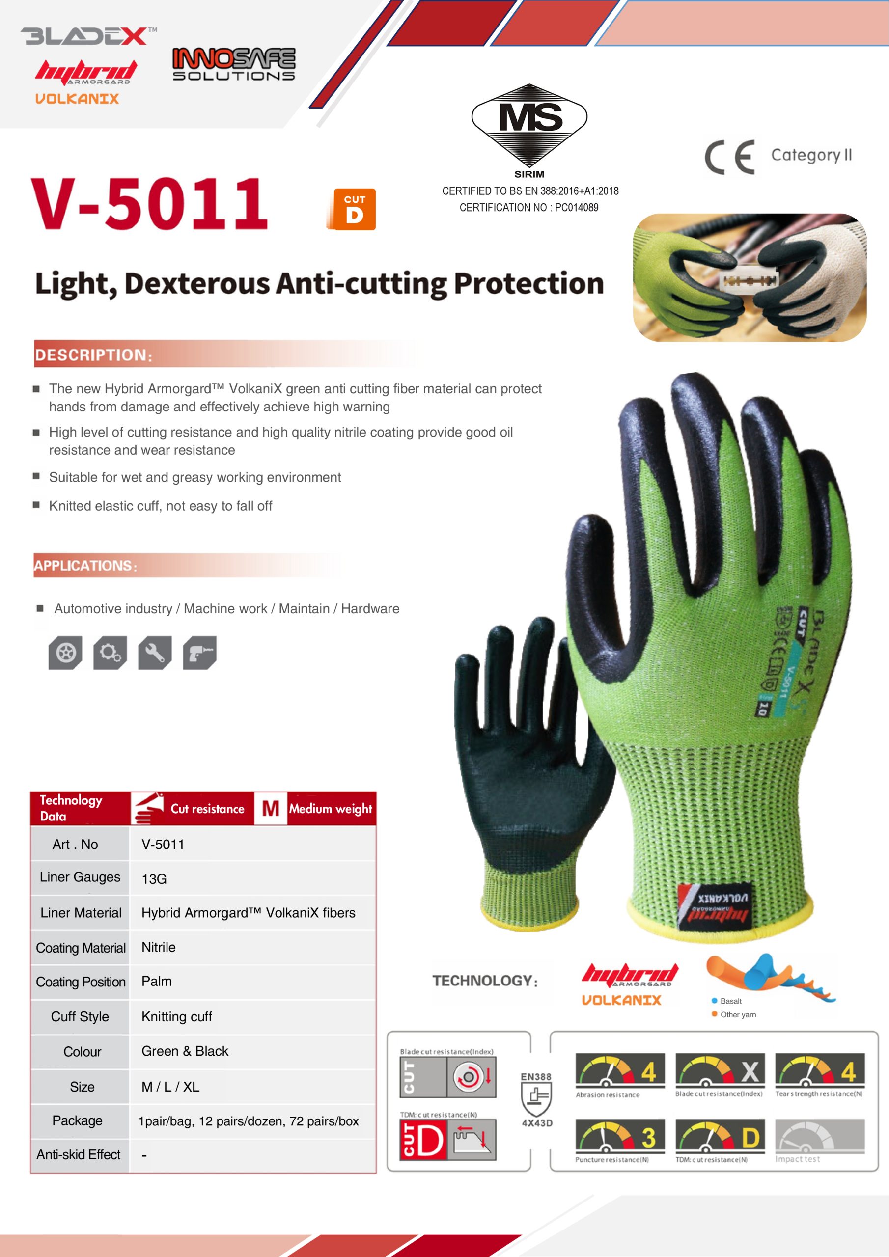 - A high level of cutting resistance and high-quality nitrile coating provide good oil resistance and wear resistance