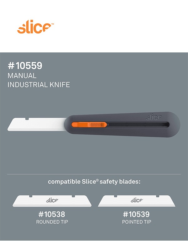 The SliceĀ® 10559 Manual Industrial Knife extends 3 inches (76 mm) for cutting thick materials like foam, extremely thick corrugate, batting, and insulation. This durable, five-position handle offers four cutting depths for a variety of jobs around the production floor or workshop. Blade stops offer the following cutting depths: 6 mm, 28 mm, 53 mm, and 76 mm. The tool features a Slice finger-friendlyĀ® blade that cuts effectively but is much safer to touch than standard metal or ceramic blades. Our no-tool blade change system also allows you to switch the blade orientation for left-handed users. Slice safety blades are chemically inert, non-sparking, oil free, and never rust. They last up to 11 times longer than comparable steel blades.